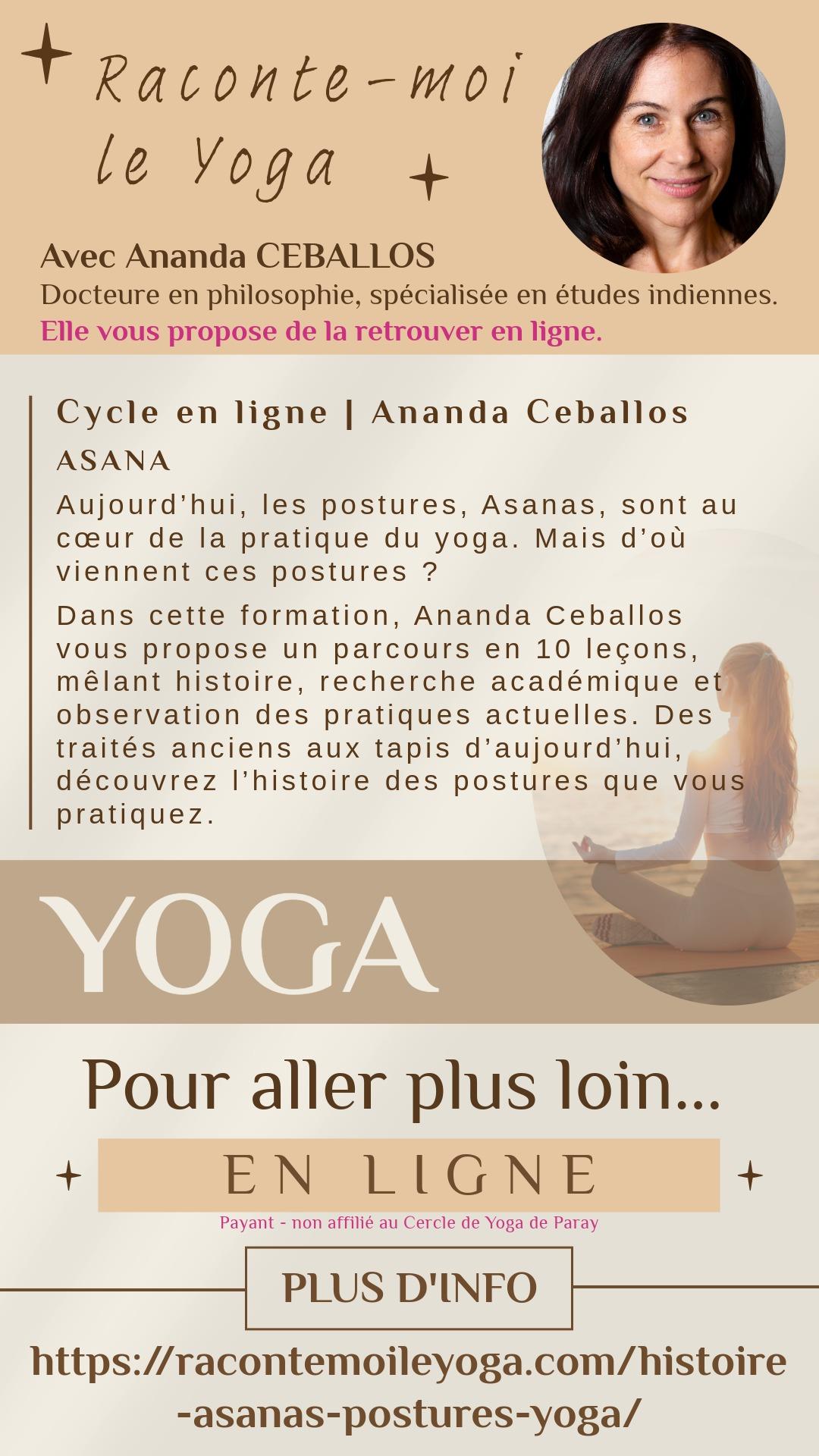 Vous l'avez rencontrée lors de nos dernières conférences organisées à Paray-Vieille-Poste, aujourd'hui Ananda CEBALLOS, vous propose de la retrouver en ligne pour aller plus loin dans votre connaissance du yoga.
